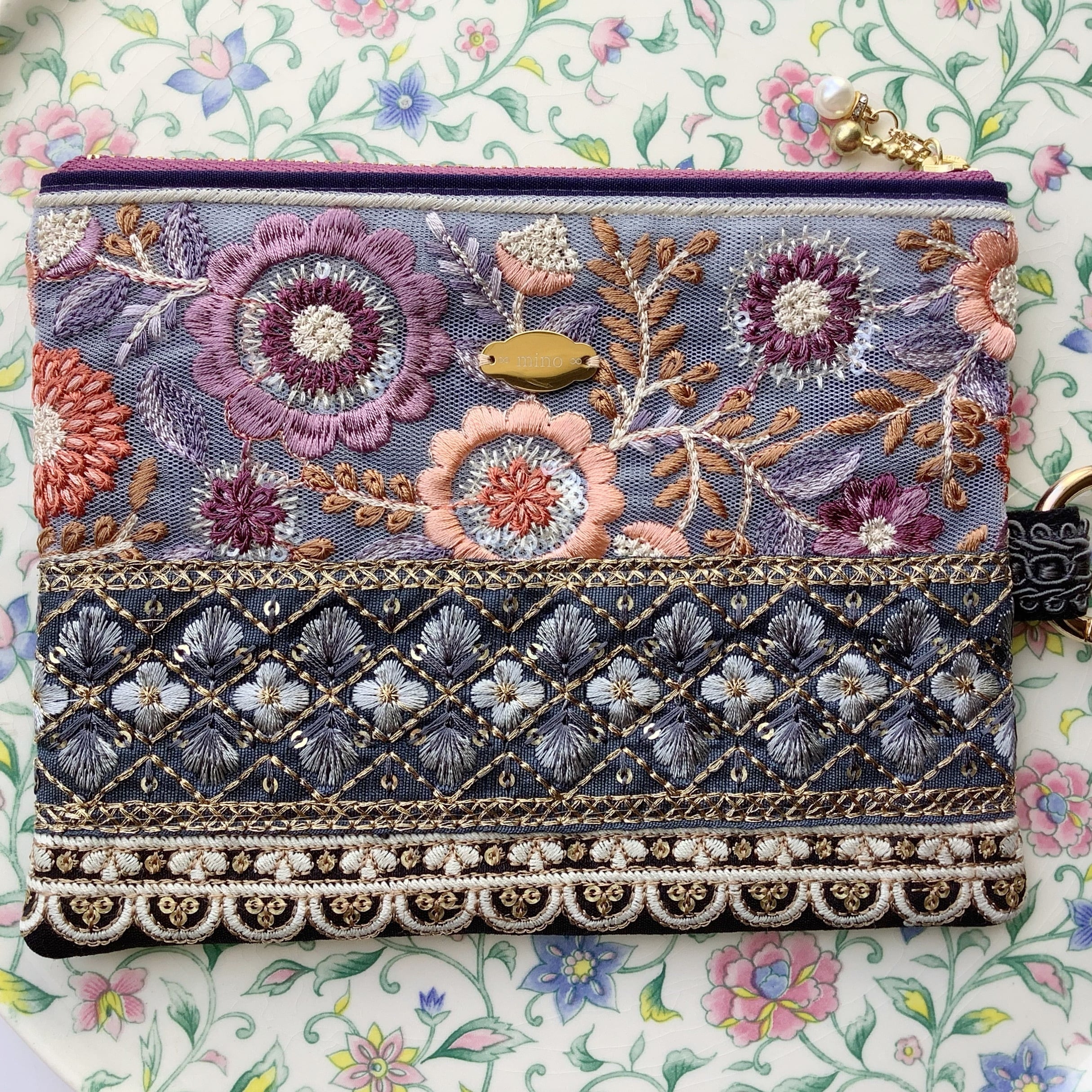 ∞mino∞ インド刺繍フラットポーチ