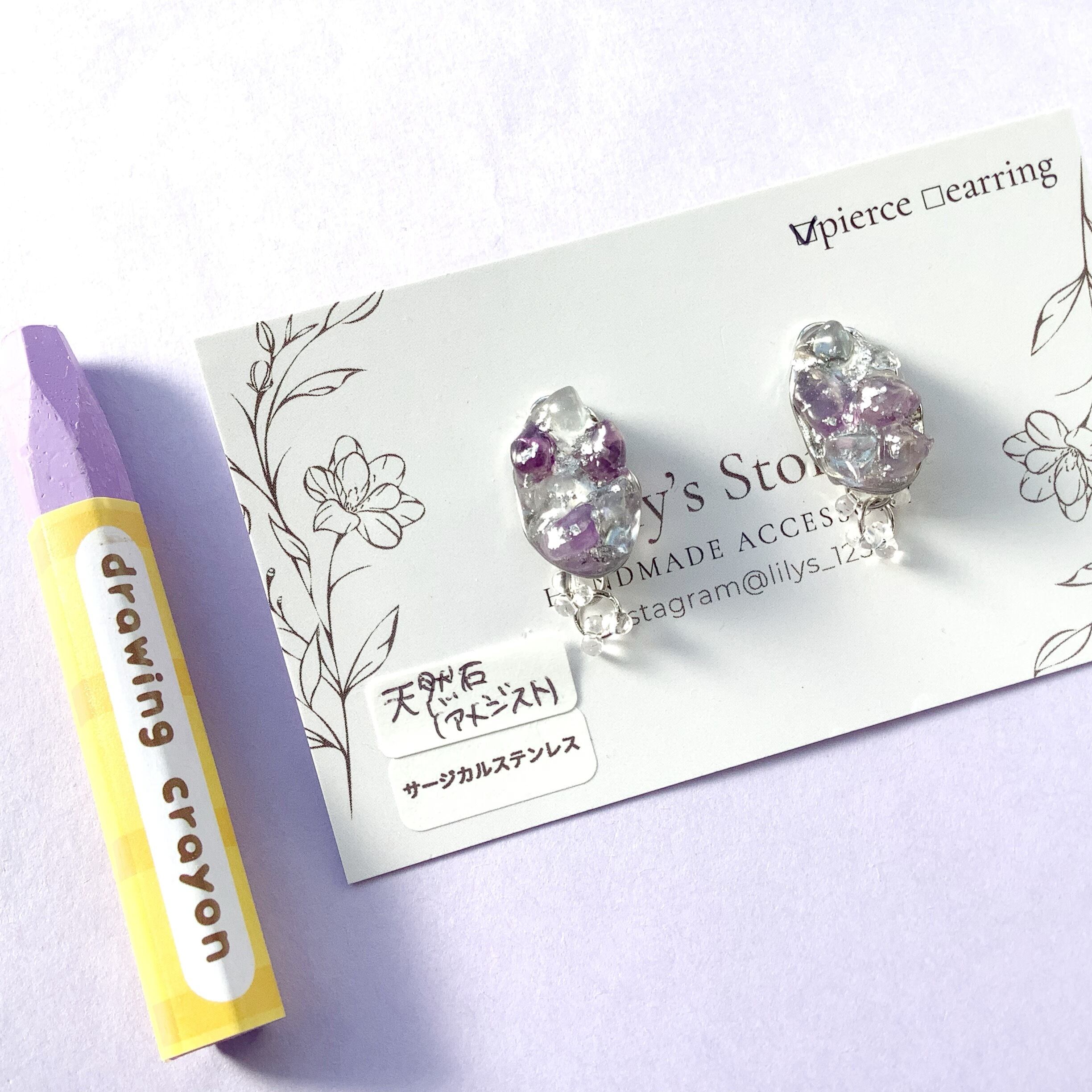 Lily's store 天然石アメジストピアス