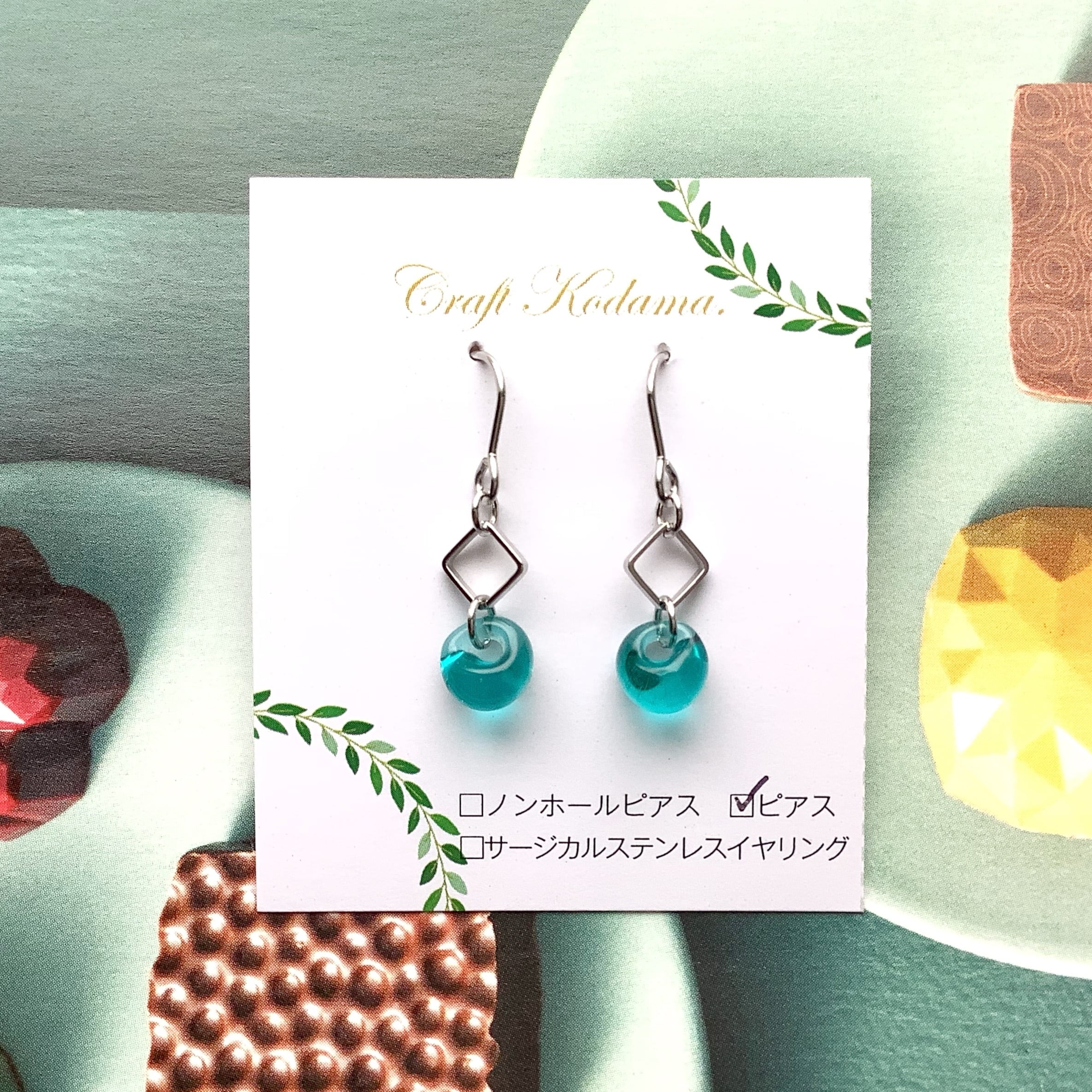 クラフトこだま。ドロップガラスのピアス/イヤリング