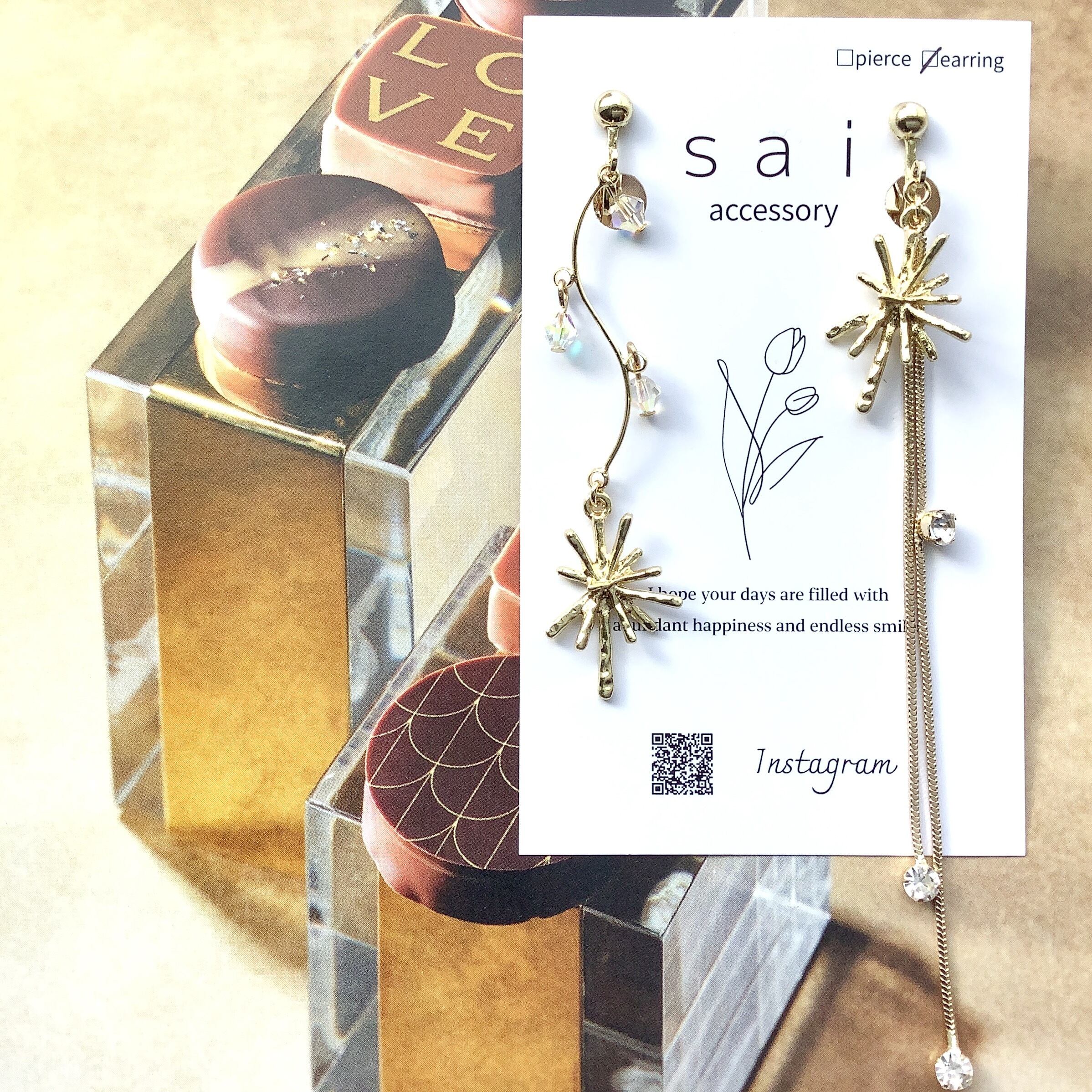 *sai* アシンメトリービジューチェーンとオーロラガラスピアス/イヤリング