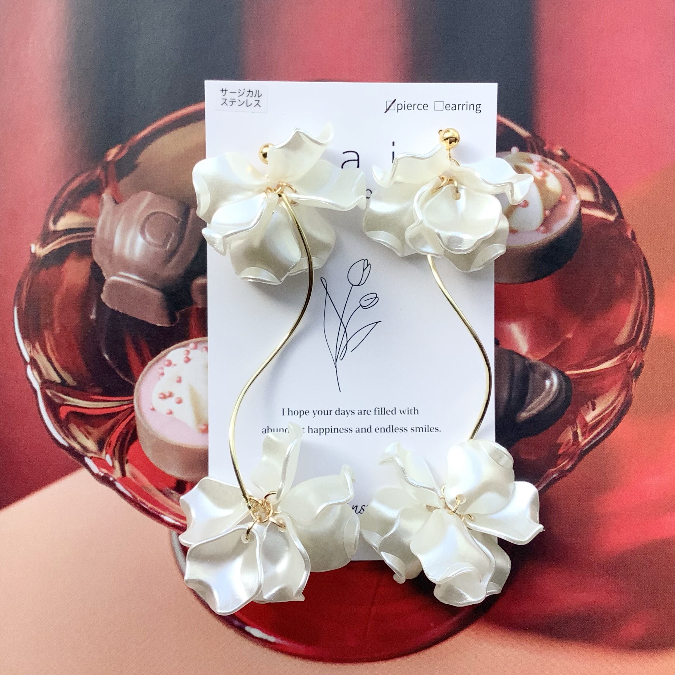 *sai* ホワイト花びらピアス/イヤリング