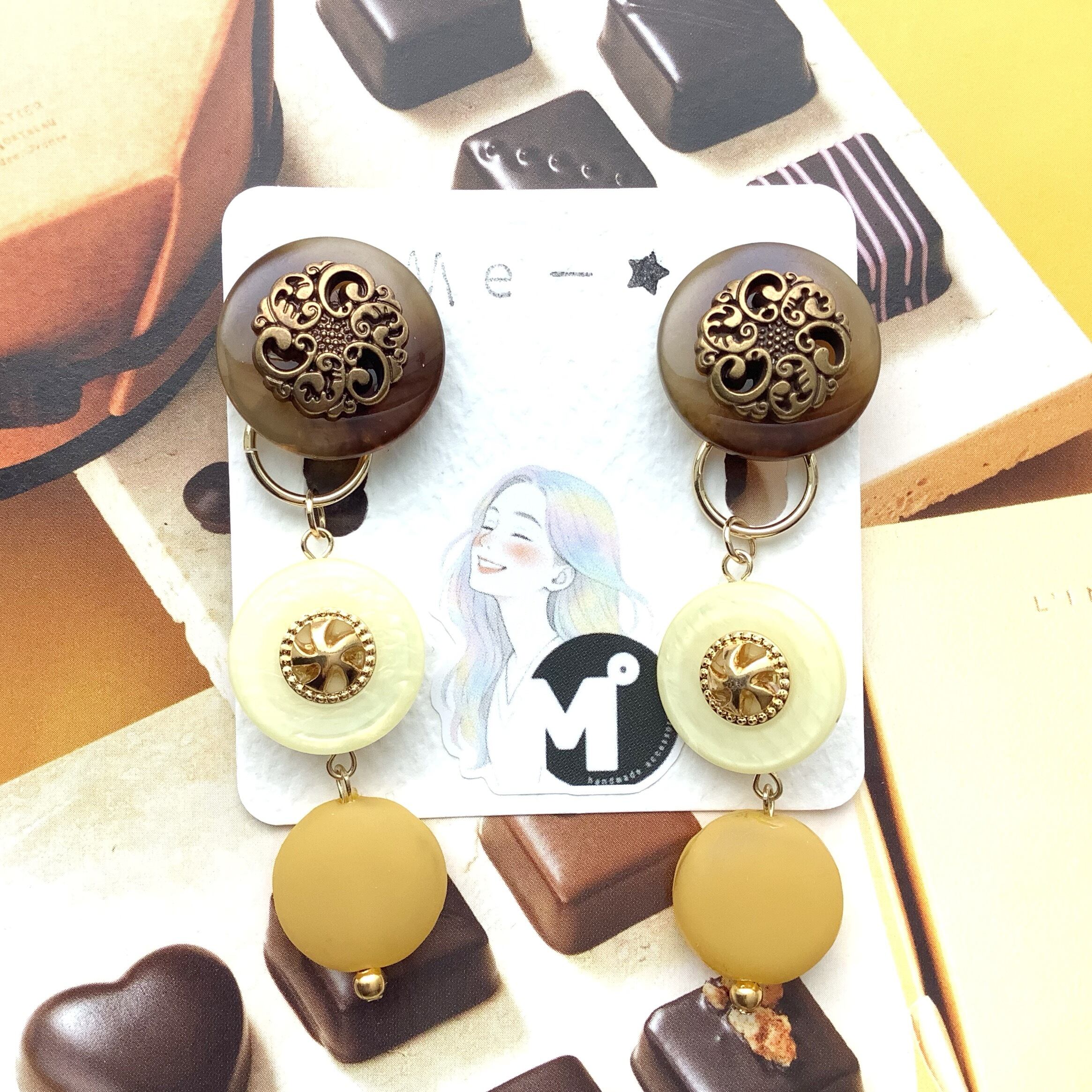 ヴィンテージボタンのアンティーク調イヤリング