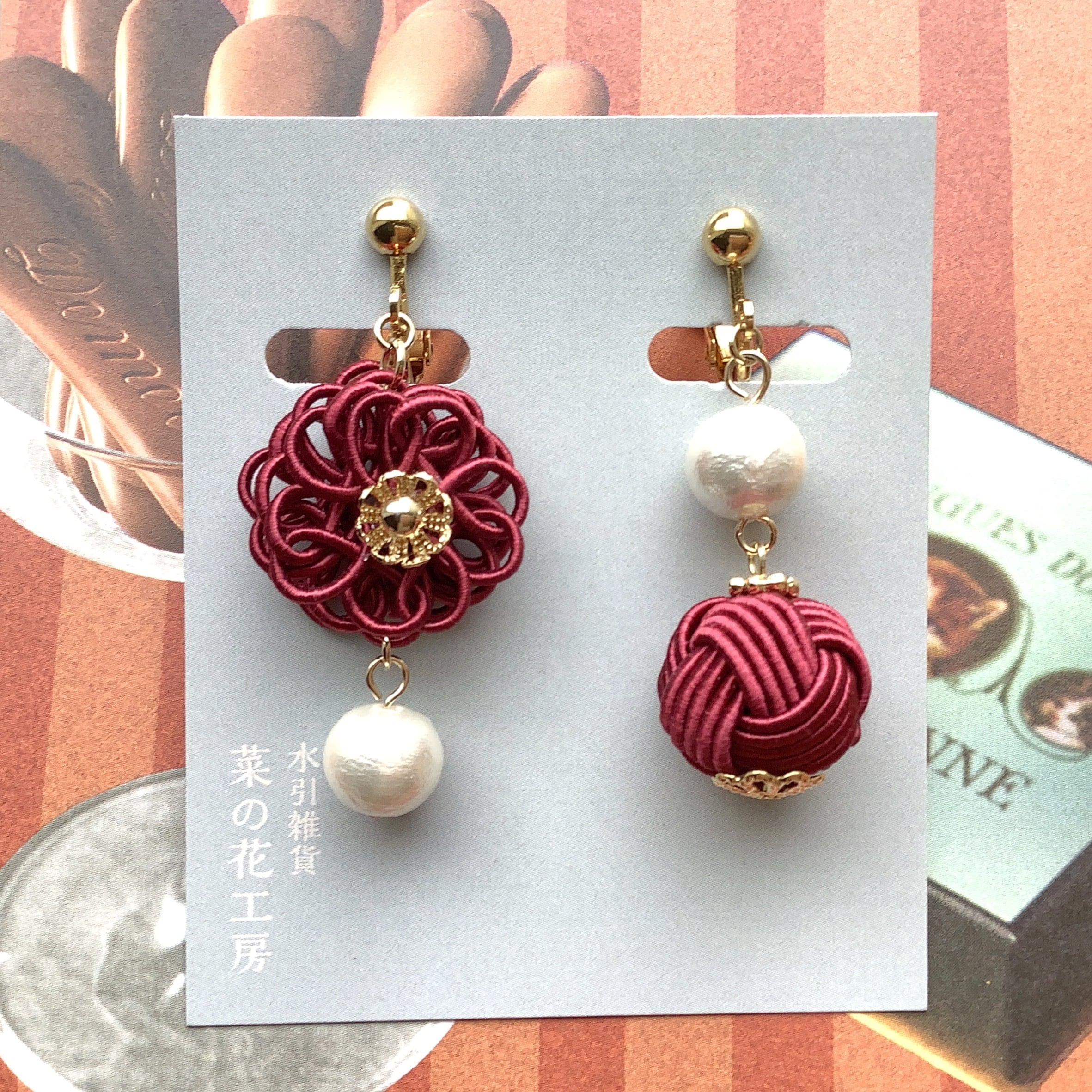 菜の花工房 水引のアシンメトリーピアス/イヤリング