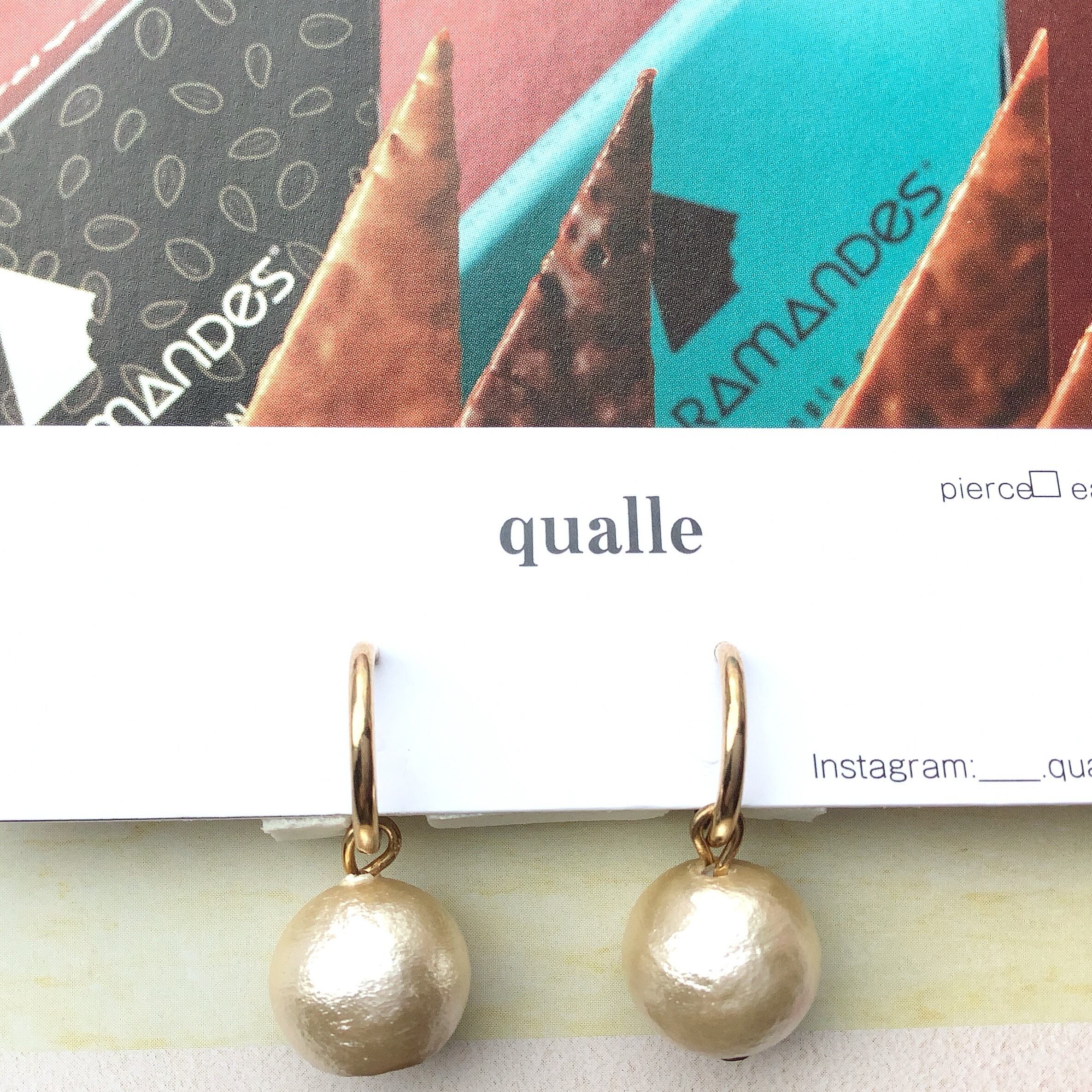 qualle コットンパールイヤリング