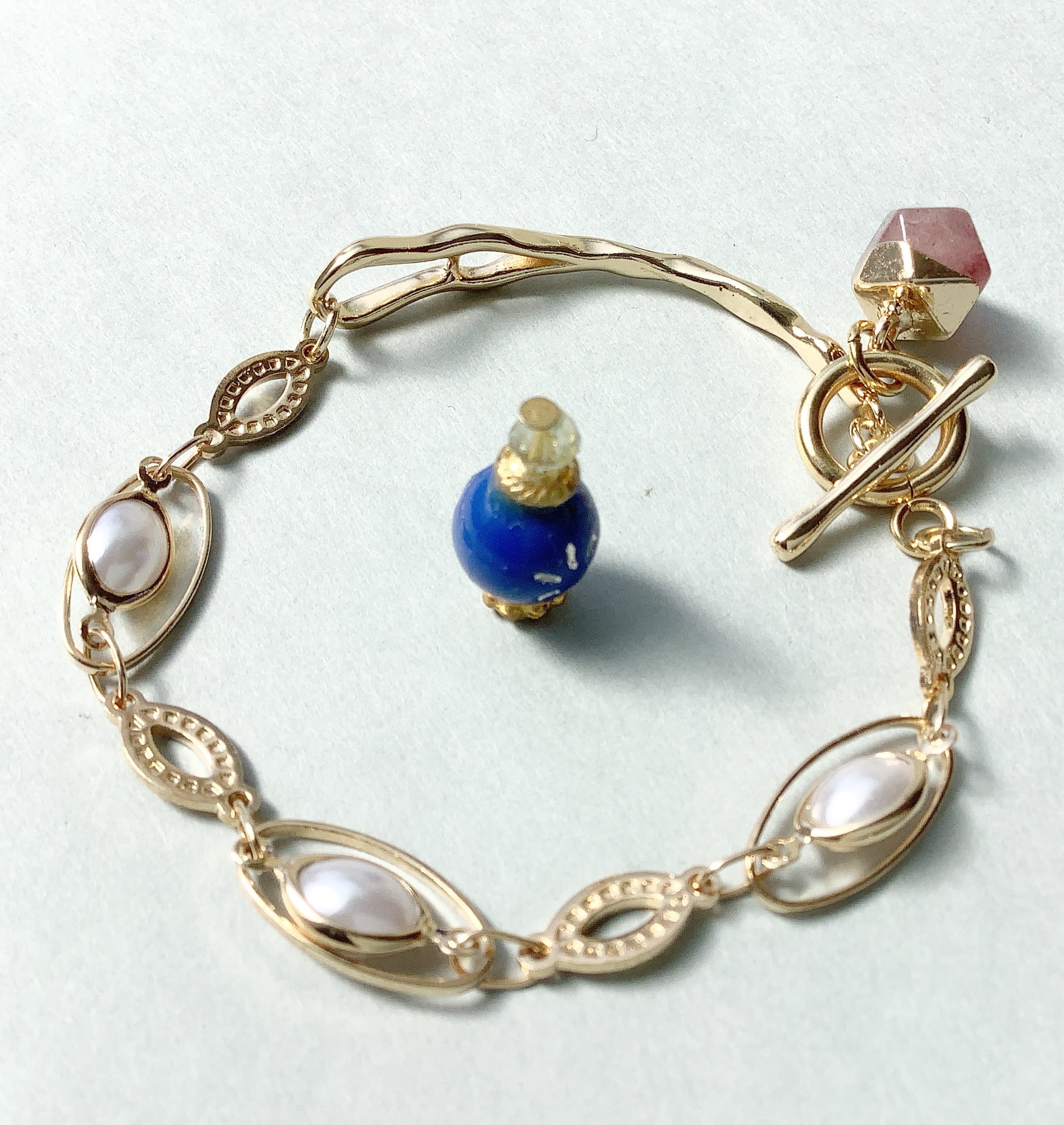 maple✳︎ 天然石ストロベリークォーツ×アンティーク調ブレスレット